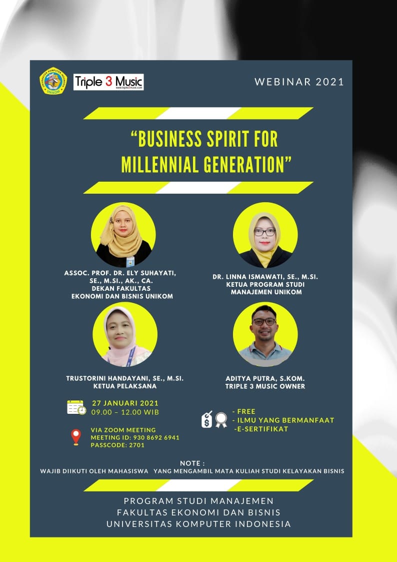 Webinar Program Studi Manajemen: "BUSINESS SPIRIT FOR MILLENIAL GENERATION"